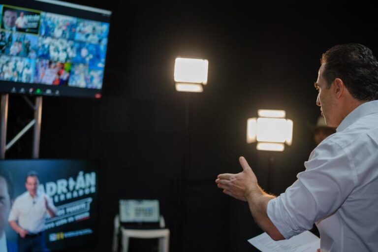 El candidato de la coalición PRI-PRD, Adrián de la Garza Santos sostuvo una serie de reuniones virtuales con grupos de...