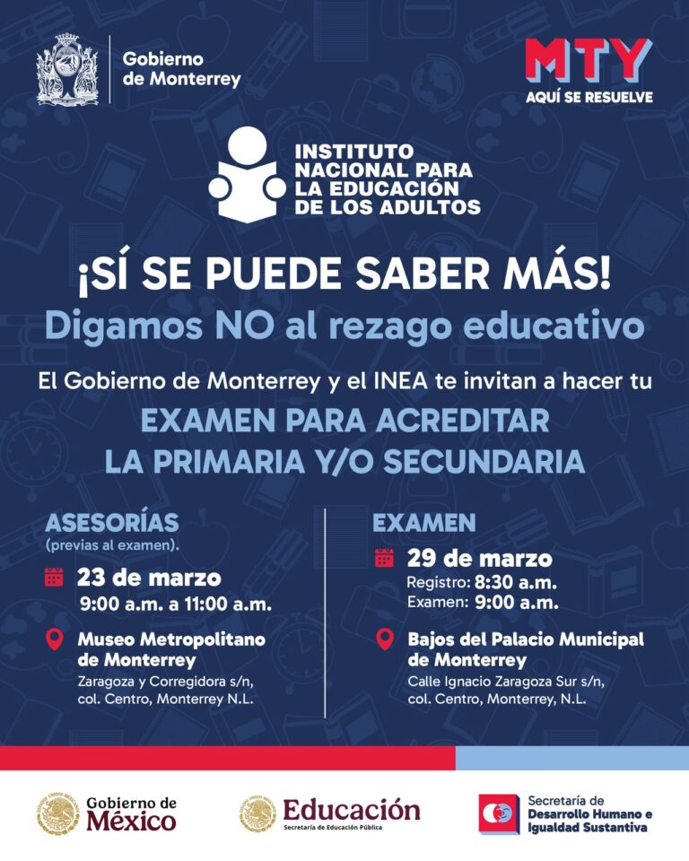 A 22 de marzo de 2025 El Gobierno de Monterrey invita a la comunidad a obtener su certificado de primaria...