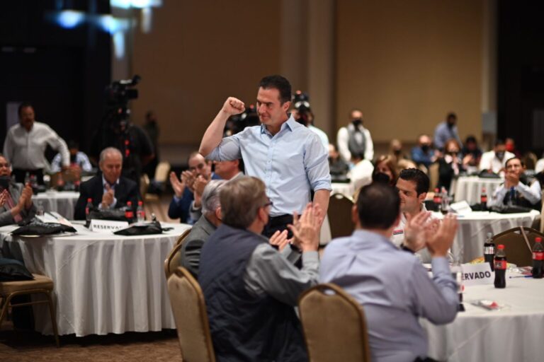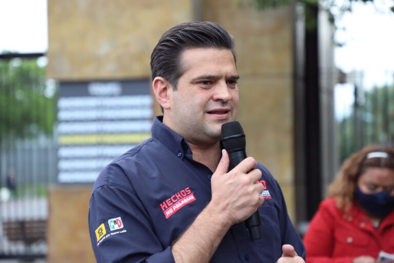 El candidato del PRI a gubernatura de la coalición “Va Fuerte por Nuevo León”, Adrián de la Garza Santos se...