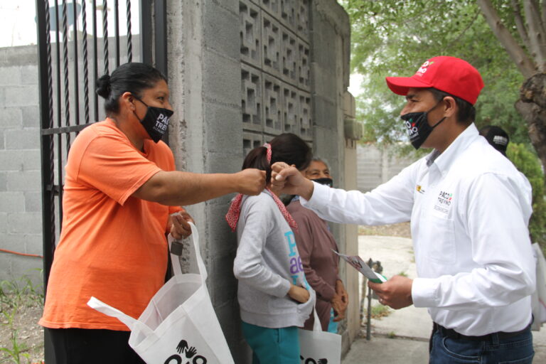 Durante una visita casa por casa en la Colonia Urbi Villa Real, el candidato del PRI a la alcaldía de...